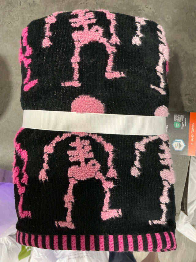 Dancing Pink Skeleton Hand Towel Set – Halloween Décor