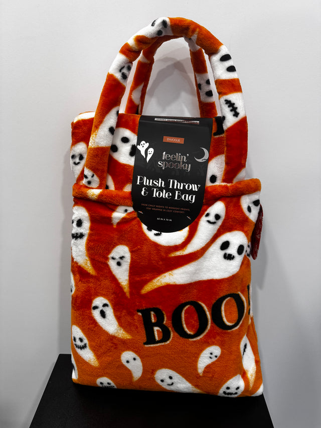 Ghost “BOO” Plush Throw & Tote Bag Set – 50" x 70"
