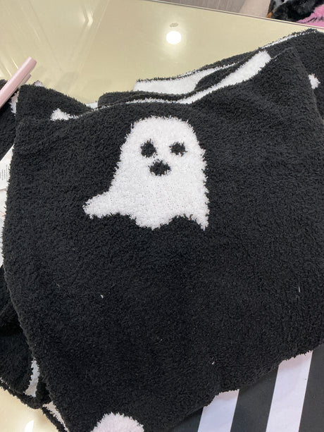 Halloween Throw Blanket Set – 2 Pack (Pink & Black Ghost Designs)