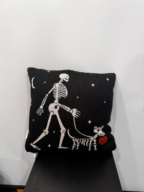 Skeleton with Dog Halloween Pillow – Trick-or-Treat