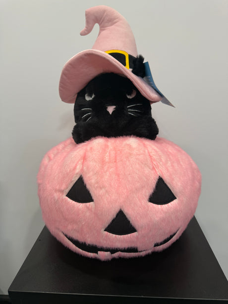 Pink Jack-O’-Lantern Plush with Black Cat Witch 026309