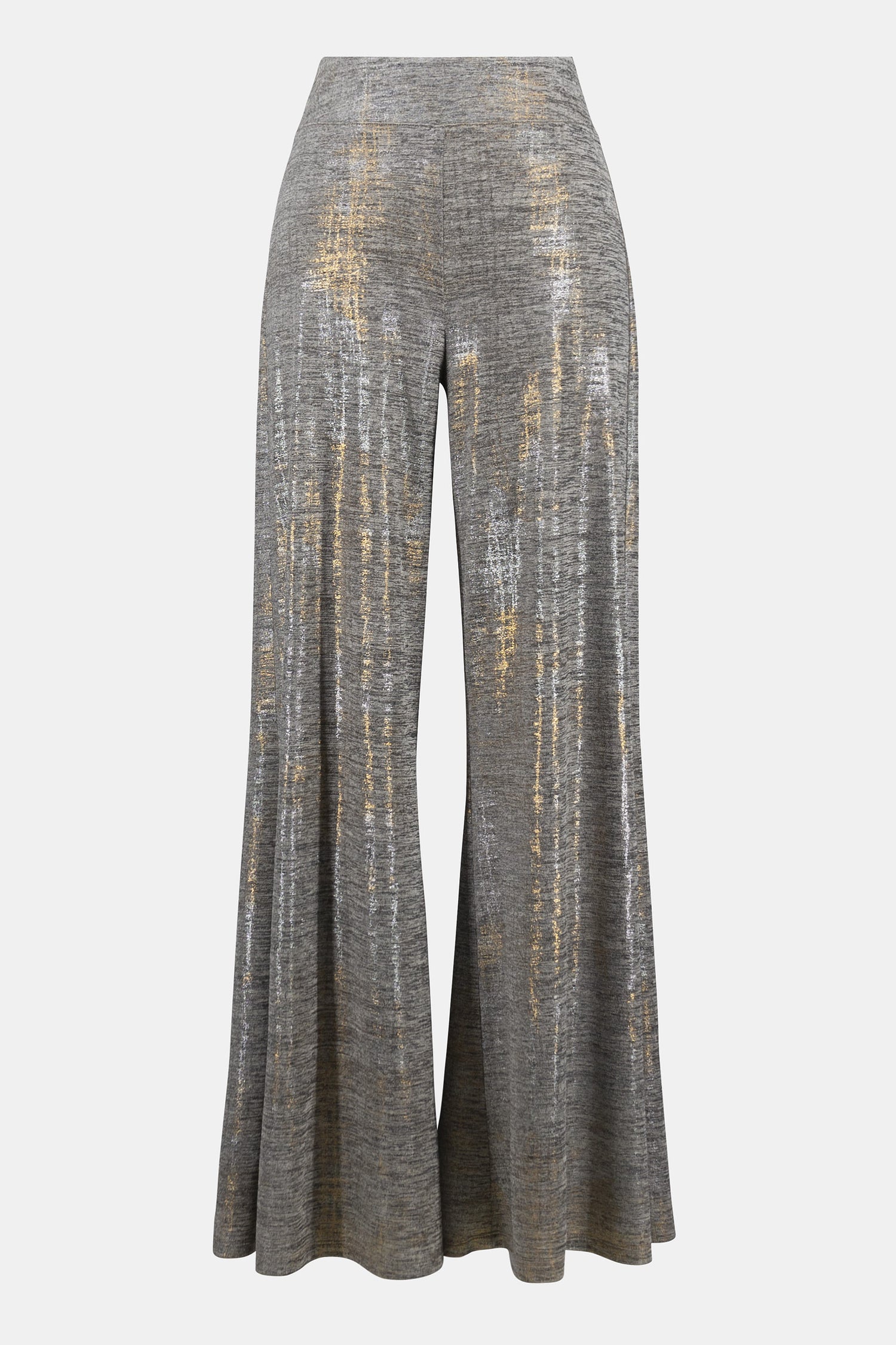 These mélange knit pull-on pants make a statement with their shimmering foiled finish. The wide-leg silhouette accentuates every step with poise and dramatic flair. The soft contour waistband ensures a comfortable fit, while front pockets add practicality to the design.