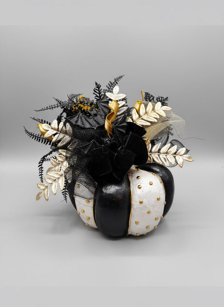 Midnight Luxe Pumpkin Arrangement – Black & Gold Halloween Décor