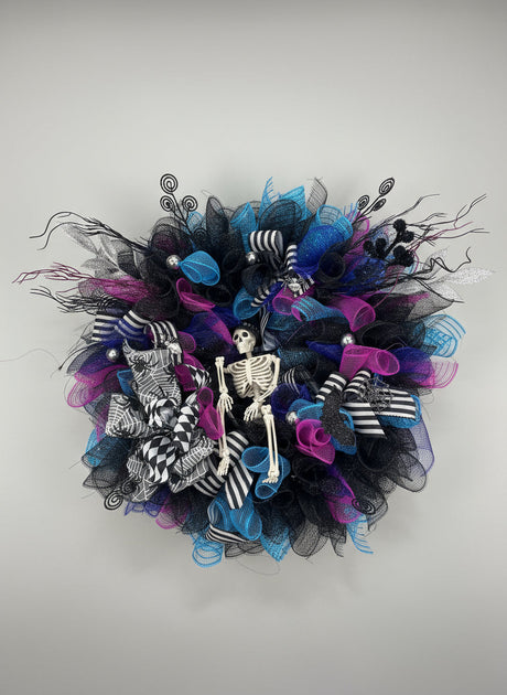 Electric Skeleton Wreath – Spooky Glam Halloween Door Décor