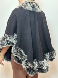 BLACK COVER-UP WITH FAUX FUR EDGES.