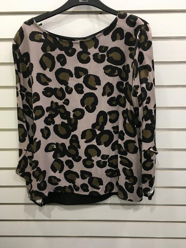 BLACK BLOUSE WITH 3/4 SLEEVE ANIMAL PRINT